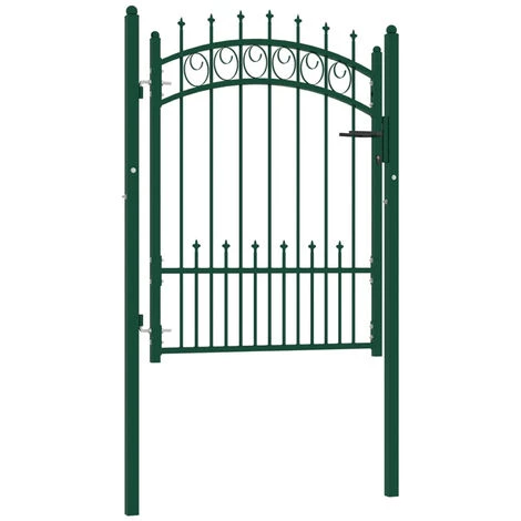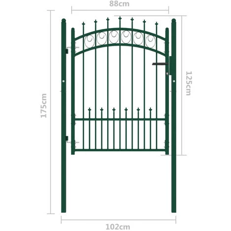 Ce portail de clôture constitue une barrière de sécurité pratique pour votre jardin, patio ou terrasse. Fabriqué en acier robuste, le portail de clôture a une construction robuste et a été enduit de poudre contre la rouille et la corrosion. Avec les barres verticales comportant des pointes et une forte entretoise horizontale comme renfort, cette porte de jardin offre un haut degré de sécurité. Le design arqué ajoute à son élégance. Elle est livrée avec deux poteaux solides ainsi que des charnières robustes pour une installation facile, et un système de verrouillage avec trois clés assorties est également inclus dans la livraison.