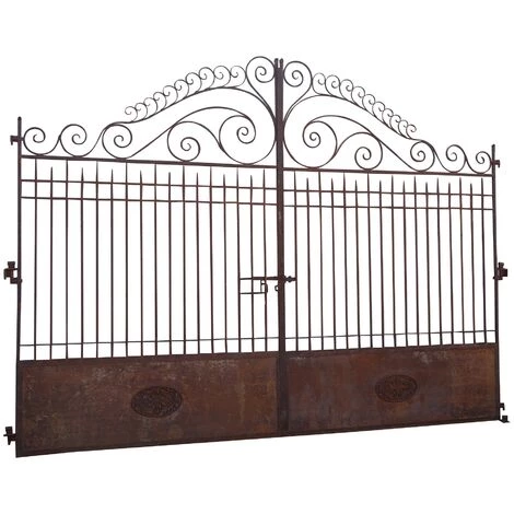 Portail ajouré, entièrement forgé à la main avec barreaux et traverses en fer, non traité. Sa forme et sa décoration reprennent celles des portails traditionnels d’autrefois. Dimensions : L400xPR7xH320 CM. Fabriqué en Italie Une collection avec un très vaste choix d’articles pour la décoration du jardin, d’idées pour la décoration d’extérieurs, d’idées pour l’ameublement et pour la décorations d’intérieurs, d’idées pour la maison, de meubles en bois pour la cuisine, de meubles pour le salon, de meubles pour la salle de bain, pour la chambre à coucher et pour le bureau.Toutes les mesures se r´fèrent à la taille maximale de l’article
