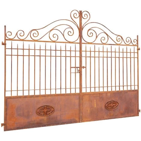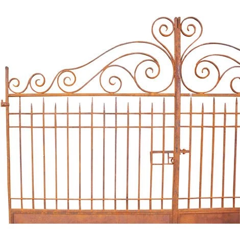 Porte en fer forgé à la main, non peinte, de 320 cm de long, 8 cm de profondeur et 245 cm de haut. Le fer est laissé naturel. Le design rappelle les formes des portes anciennes et traditionnelles. Il existe un vaste catalogue d’articles d’ameublement de jardin, d’idées d’ameublement d’extérieur, d’articles de décoration de jardin, d’articles de décoration intérieure pour l’ameublement et la décoration de la maison, d’idées d’ameublement de la maison et de meubles en bois pour l’ameublement de la cuisine, du salon, de la salle de bains, de la chambre à coucher et du bureau. Toutes les mesures se réfèrent à la taille maximale de l’article.