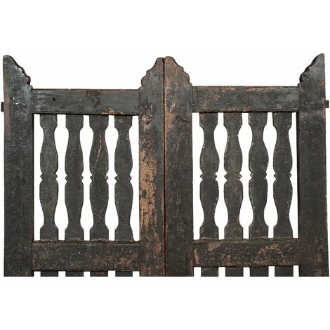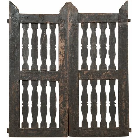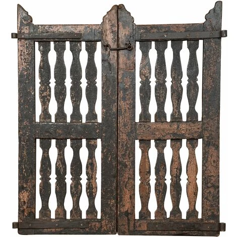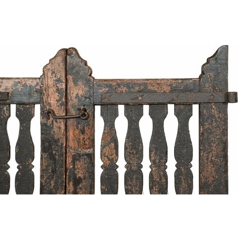 Portail en bois massif ancien très solide et robuste avec des dimensions de 100 cm de largeur, 3 cm de profondeur, 112 cm de hauteur. Cette porte provient de la démolition et de la restauration d’importants bâtiments anciens. Finement restauré et également traité pour un usage extérieur, chaque portail est une pièce d’antiquité véritable et unique. Toutes les mesures se rapportent aux dimensions maximales de l’article.