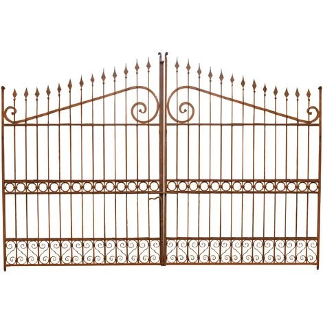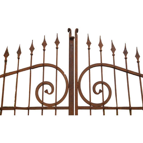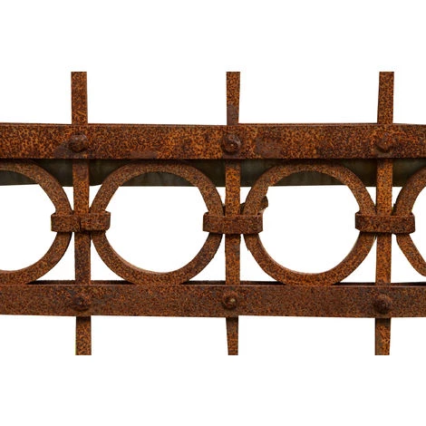 Portrail en fer solide, entièrement forgée à la main. N’est pas traitée, laissé au naturel. Le design rappelle les formes traditionnelles de portes. Taille: L402xPR4xH263 cm