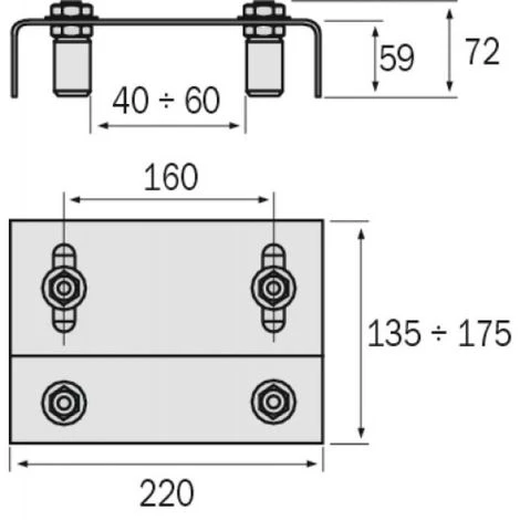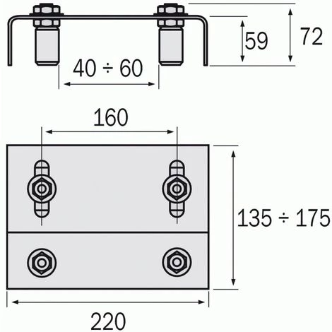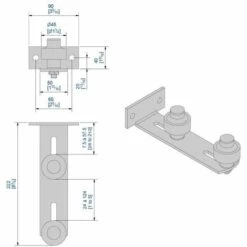 Guides supérieurs réglablesGuide supérieur réglable sur plaque 255 pour porte coulissante sur fer plat Ensemble de guidage haut de portail réglable équipé de 4 guides nylon de 30 mm.