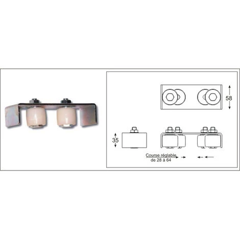 Hauteur de 35mm. Largeur de 58mm. Il y a Réglablemm d’entraxe entre les trous.