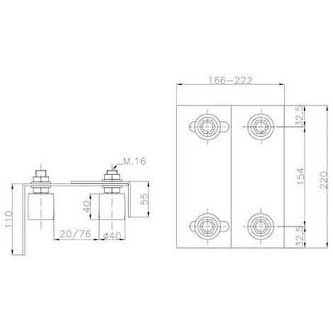 A installer sur la partie supérieure des portes coulissantes pour empêcher son oscillation pendant les mouvements d’ouverture et de fermeture. La plaque a 4 poulies guide en nylon est a fixer au mur.