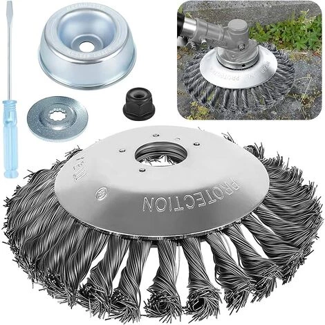 【Conception de fil noué】 Brosse de roue en fil d’acier avec fil noué en cône, flexible, tranchant et efficace, peut toujours fonctionner normalement sur les rochers, améliorer considérablement l’efficacité du travail et économiser de l’argent.