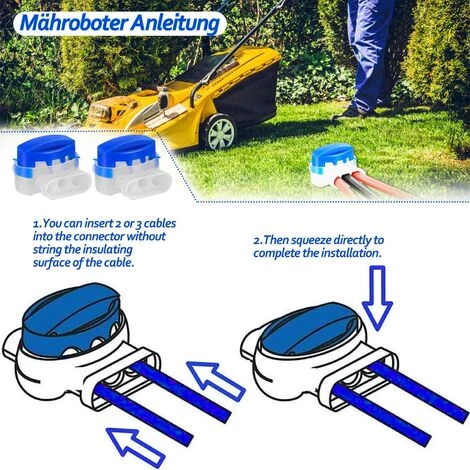 【Facile à utiliser】 : sans soudure ni dénudage, vous pouvez utiliser les connecteurs de fil pour connecter les extrémités de fil ensemble. Insérez simplement les deux extrémités du câble aussi loin que possible et serrez-les avec une pince, simplement et en toute sécurité. Les pièces de rechange idéales pour les robots tondeuses.