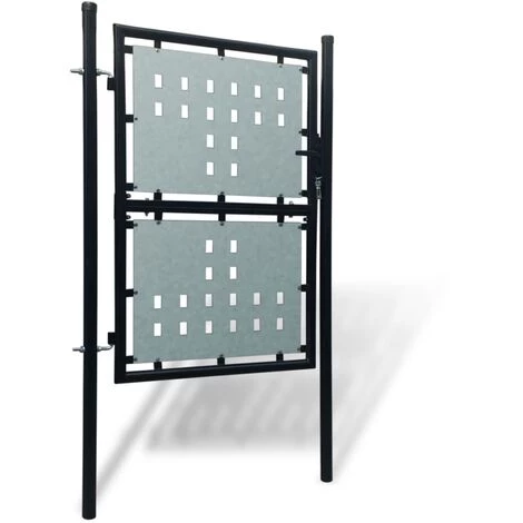 Ce portail de clôture sera une porte d’entrée pratique au style moderne pour isoler votre jardin du monde extérieur. Très stable et durable, le portail de clôture formera une barrière de sécurité pratique pour votre jardin, patio ou terrasse. Les tôles galvanisées avec des motifs de trous décoratifs renforcent le cadre, donc notre porte de jardin offrira un degré élevé de sécurité, tout en formant une fabuleuse entrée sur votre propriété. Fabriqué en acier robuste, le portail est enduit de poudre contre la rouille et la corrosion. Ce portail a deux poteaux solides avec des charnières robustes pour une installation facile et un système de verrou robuste avec trois clés correspondantes incluses également dans la livraison. Ce portail de jardin combine habilement style, robustesse, stabilité et résistance à la corrosion !