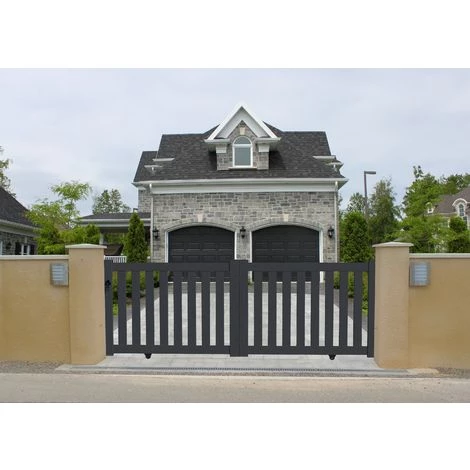 Le portail aluminium coulissant ajouré est motorisé. Il coulisse vers la droite ou vers la gauche, selon vos besoins. Ce modèle, particulièrement adapté aux besoins de grandes dimensions, n’empiète ni sur votre jardin, ni sur la rue.
