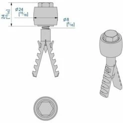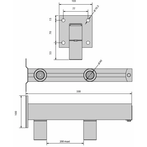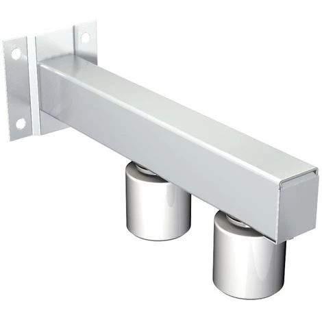 Support en acier, monté sur cages à rouleaux avec 2 olives en nylon Ø40 mm, hauteur 60 mm.