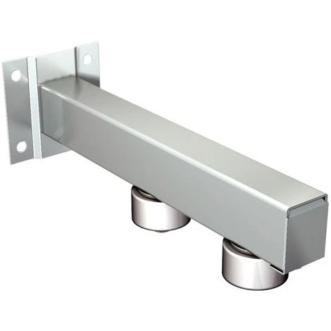 Support en acier, monté sur cages à rouleaux avec 2 olives en nylon Ø50 mm, hauteur 25 mm.