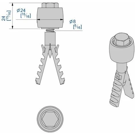 - Guide avec olive laiton sur cheville pour profil de guidage en U