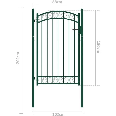 Ce portail de clôture constitue une barrière de sécurité pratique pour votre jardin, patio ou terrasse. Grâce à son élégante conception supérieure arquée et à ses solides renforts horizontaux qui renforcent le cadre, ce portail de jardin offre un haut degré de sécurité tout en formant une fabuleuse entrée sur votre propriété. Fabriqué en acier robuste, le portail de clôture a une construction robuste et a été enduit de poudre contre la rouille et la corrosion. Il est livré avec deux poteaux solides ainsi que des charnières robustes pour une installation facile, et un système de verrouillage avec trois clés assorties est également inclus dans la livraison.