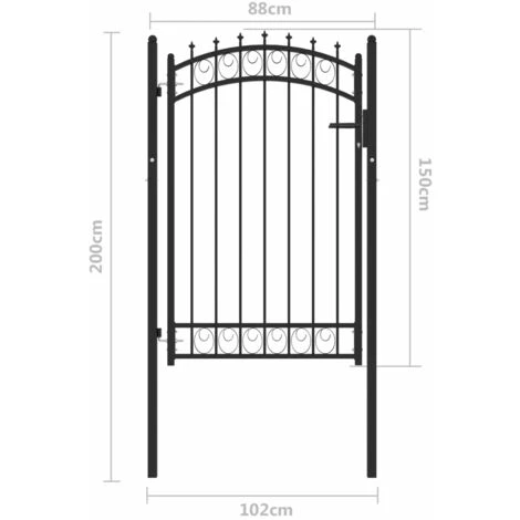 Ce portail de clôture constitue une barrière de sécurité pratique pour votre jardin, patio ou terrasse. Fabriqué en acier robuste, le portail de clôture a une construction robuste et a été enduit de poudre contre la rouille et la corrosion. Avec les barres verticales comportant des pointes et une forte entretoise horizontale comme renfort, cette porte de jardin offre un haut degré de sécurité. Le design arqué ajoute à son élégance. Elle est livrée avec deux poteaux solides ainsi que des charnières robustes pour une installation facile, et un système de verrouillage avec trois clés assorties est également inclus dans la livraison.
