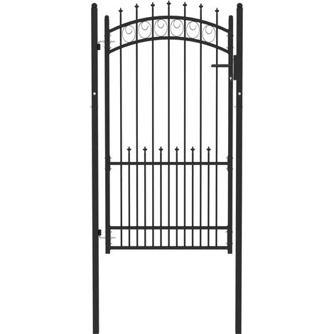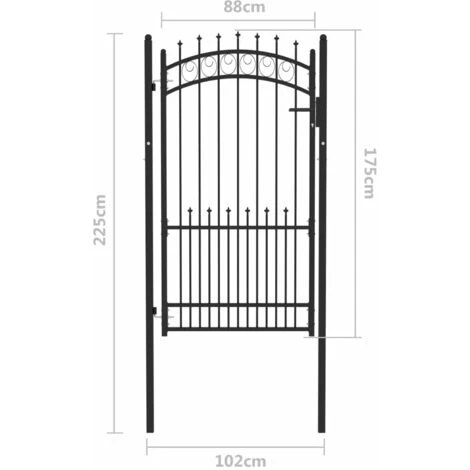 Ce portail de clôture constitue une barrière de sécurité pratique pour votre jardin, patio ou terrasse. Fabriqué en acier robuste, le portail de clôture a une construction robuste et a été enduit de poudre contre la rouille et la corrosion. Avec les barres verticales comportant des pointes et une forte entretoise horizontale comme renfort, cette porte de jardin offre un haut degré de sécurité. Le design arqué ajoute à son élégance. Elle est livrée avec deux poteaux solides ainsi que des charnières robustes pour une installation facile, et un système de verrouillage avec trois clés assorties est également inclus dans la livraison.