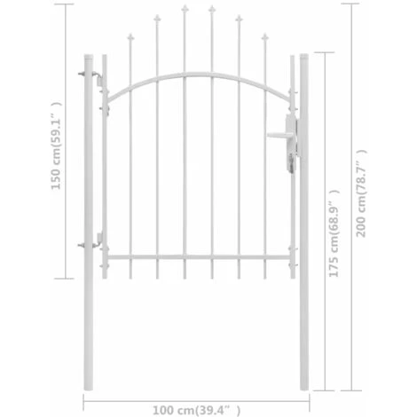 Ce portail de jardin sera une porte d’entrée pratique au style moderne pour isoler votre jardin du monde extérieur. Très stable et durable, le portail de clôture formera une barrière de sécurité pratique pour votre jardin, patio ou terrasse. Grâce à son design élégant et au dessus arqué et à ses renforts horizontaux résistants pour renforcer le cadre, notre portail de jardin fournira un haut degré de sécurité tout en constituant une fabuleuse entrée sur votre propriété. Fabriquée en acier robuste, la porte est revêtue de poudre contre la rouille et la corrosion. Cette porte de clôture est équipée d’un système de verrouillage et est livrée avec deux poteaux solides le long des charnières robustes pour une installation facile. Cette porte de jardin est une excellente combinaison de style, de résistance et de stabilité !