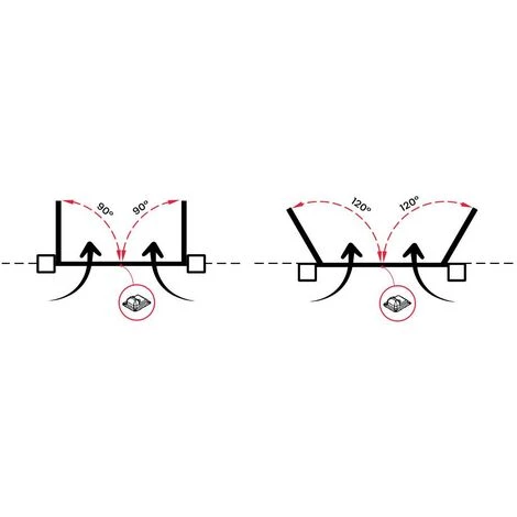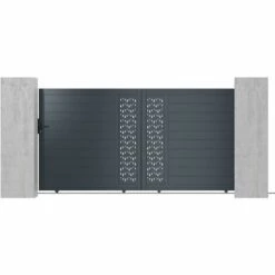 – Les portails battants peuvent s’ouvrir vers l’intérieur ou vers l’extérieur selon votre choix. L’ouverture maximale est de 120° (si le portail est encadré par des poteaux, l’angle maximal sera naturellement de 90°).