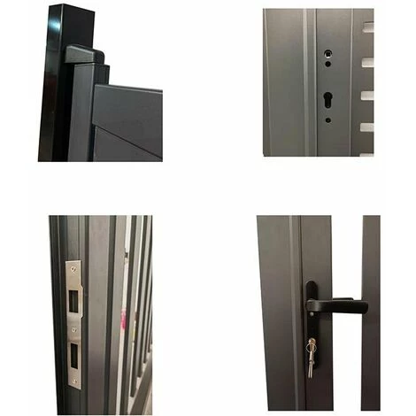 - Equipement inclus : poignée avec serrure, clé, butée d’arrêt de la porte, quincaillerie