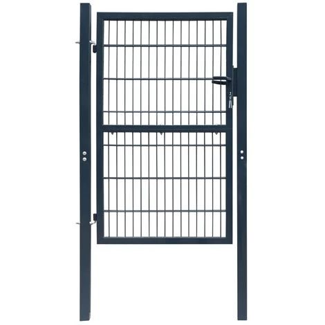 DescriptionCe portail de clôture 2D sera une porte d’entrée pratique au style moderne pour isoler votre jardin du monde extérieur. Très stable et durable, le portail de clôture formera une barrière de sécurité pratique pour votre jardin, patio ou terrasse. Soudé avec des fils verticaux et des fils horizontaux doubles pour plus de rigidité, notre portillon offre un haut degré de sécurité tout en formant une magnifique entrée sur votre propriété. Fabriqué à partir d’acier robuste, ce portillon possède un revêtement en poudre qui le protège contre la rouille et la corrosion. Ce portillon 2D est livré avec des charnières robustes pour une installation facile et un système de verrou robuste avec 2 clés correspondantes. Ce portillon combine habilement style, robustesse, stabilité et résistance à la corrosion !SpécificationsCouleur : Gris anthraciteMatériau : Acier avec finition en poudreDimensions totales : 106 x 170 cm (l x H)Dimensions du panneau de portail : 83 x 120 cm (l x H)Taille de la maille : 200 x 50 mmDimensions des tubes des poteaux : 60 x 60 x 1,5 mm (L x l x É)Dimensions des tubes des panneaux : 40 x 40 x 1,3 mm (L x l x É)Diamètre des fils horizontaux : 6 mmDiamètre des fils verticaux : 5 mm2 poteaux carrés avec charnières robustes pour une installation facileVerrou robuste avec 2 clés correspondantes (incluses)